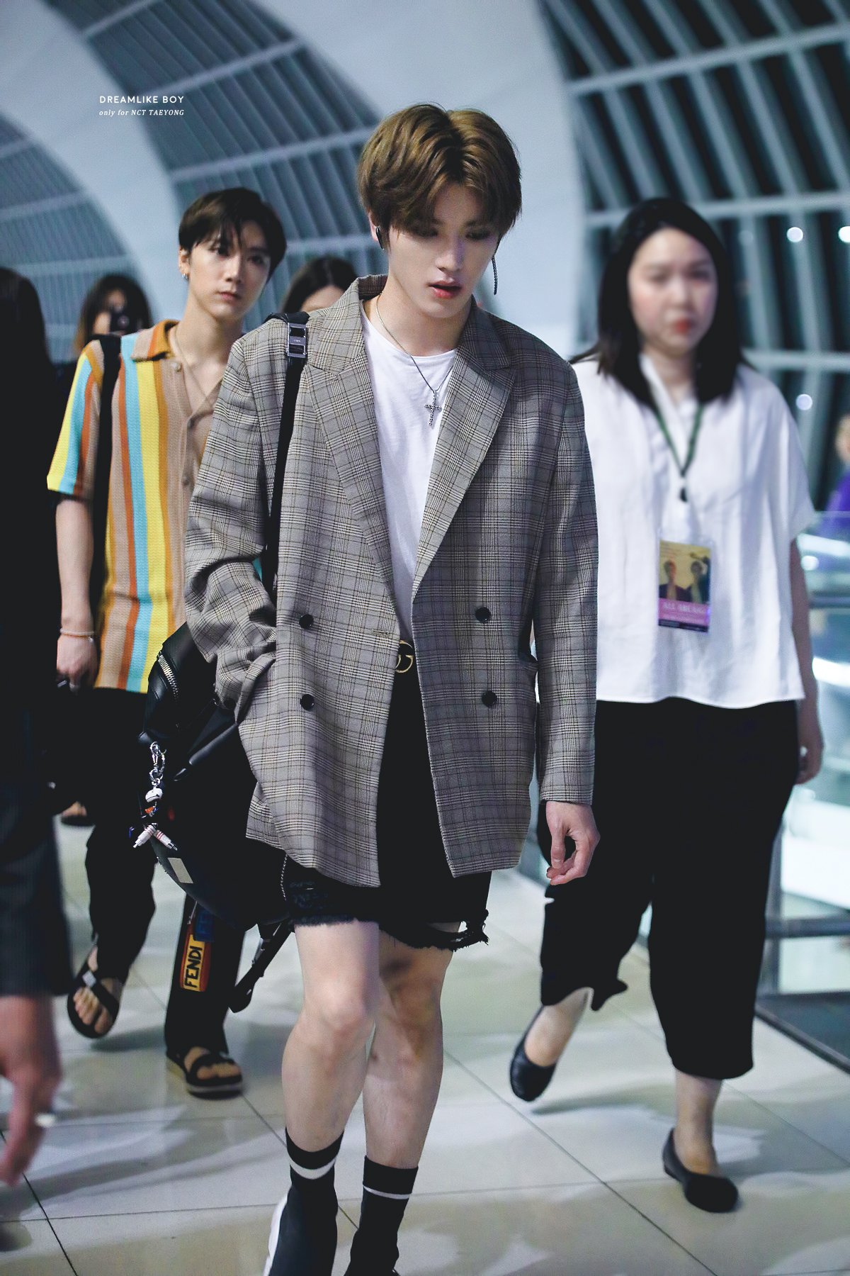 Tag GreyBrownHairAirPodsBackpackBlazerFaceMaskRippedJeansShortsSneakersBALENCIAGA Speed TrainerFENDI Face BackpackAirport